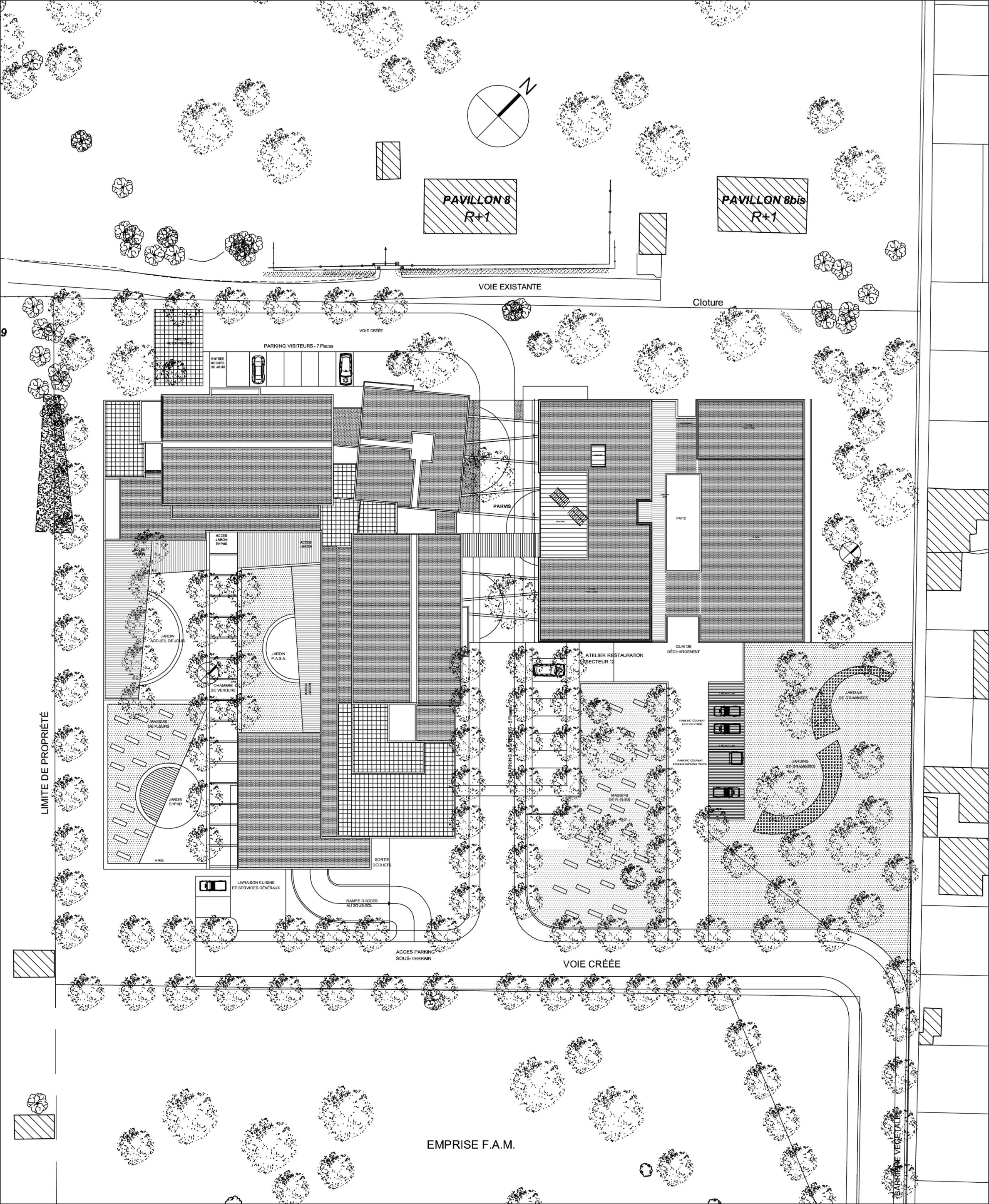 - EHPAD (Etablissement d’Hébergement pour Personnes Agées Dépendantes), pour le bâtiment principal sur un plan en équerre.