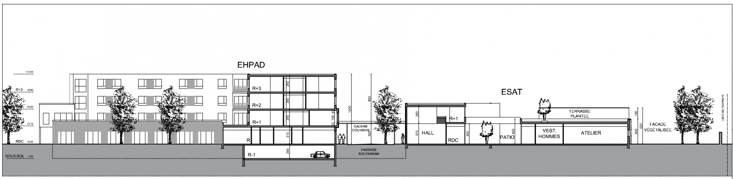 Le projet est inscrit dans une démarche environnemental (certification HQE : certification NF HQE pour l’ESAT et H&E pour l’EHPAD).